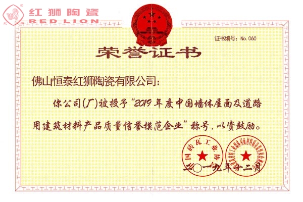 我司是廣東省內(nèi)唯一擁有“非物質(zhì)文化傳承”技藝的建材陶企,曾連續(xù)14年被評(píng)為廣東省重合同守信用企業(yè);1999年起持續(xù)通過(guò)ISO質(zhì)量管理體系認(rèn)證、ISO環(huán)境管理體系認(rèn)證、OHSAS職業(yè)健康安全管理體系認(rèn)證;2002年成立了經(jīng)佛山市科學(xué)技術(shù)局、佛山市發(fā)展計(jì)劃局、佛山市經(jīng)濟(jì)貿(mào)易局認(rèn)證的佛山市工程技術(shù)研究開(kāi)發(fā)中心;2003年“紅獅”牌獲選廣東省著名商標(biāo);2005年被佛山市知識(shí)產(chǎn)權(quán)局授予佛山市知識(shí)產(chǎn)權(quán)示范企業(yè);2008年被廣東省建筑材料行業(yè)協(xié)會(huì)評(píng)為廣東省建材質(zhì)量信用企業(yè)、廣東省建材行業(yè)節(jié)能減排優(yōu)秀企業(yè)、改革開(kāi)放30年廣東省建材行業(yè)突出貢獻(xiàn)企業(yè);2009年被廣東省科學(xué)技術(shù)廳評(píng)為廣東省民營(yíng)科技企業(yè)、高新技術(shù)企業(yè);2009-2018年被評(píng)為廣東省清潔生產(chǎn)企業(yè);2017年被廣東省循環(huán)經(jīng)濟(jì)和資源綜合利用協(xié)會(huì)認(rèn)定為廣東省資源綜合利用企業(yè);2017年作為石灣琉璃瓦制作技藝傳承保護(hù)單位列入佛山市非物質(zhì)文化遺產(chǎn)項(xiàng)目名錄;2017及2018年被授予廣東省名牌產(chǎn)品。